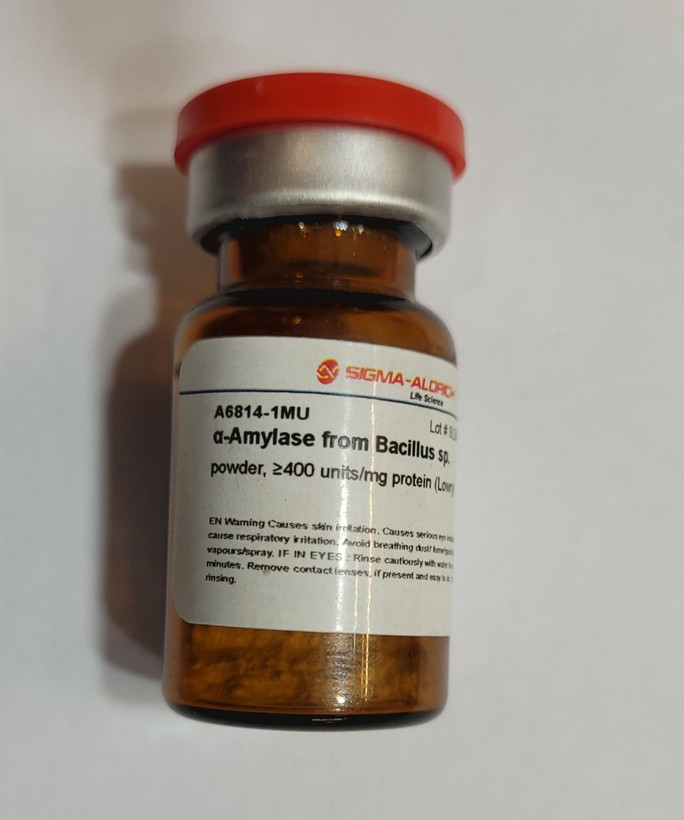 مشخصات فنی : A6814sigma-Aldrichα-Amylase from Bacillus . powder, ≥400 units/mg protein (Lowry)