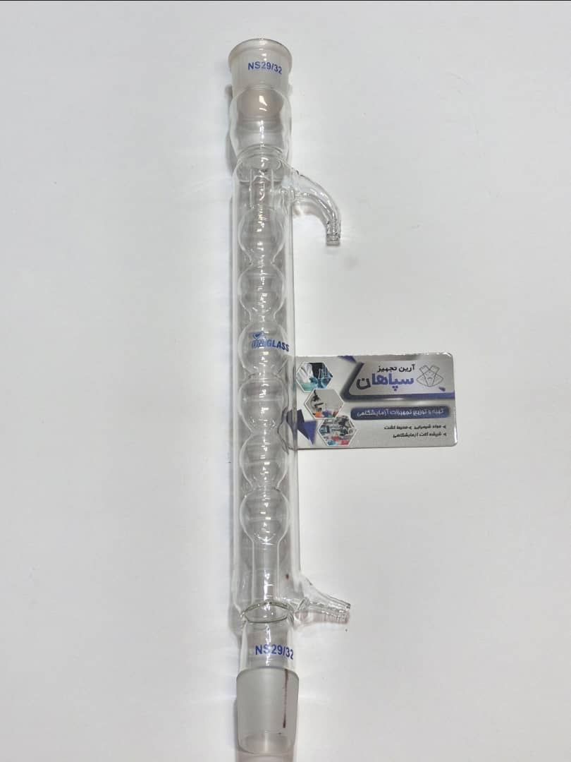 کندانسور حبابدار (Allihn condenser) که به عنوان مبرد حبابدار یا کندانسور رفلاکس هم شناخته میشود، یک نوع کندانسور آزمایشگاهی است که برای تبدیل بخارات به مایعات (کندانساسیون) استفاده میشود [1، 2]. این کندانسور دارای یک لوله مرکزی با حبابهای متعدد است که سطح تماس با بخار را افزایش میدهد و برای حلالهایی با دمای جوش پایینتر از کندانسور ساده کاربرد دارد.