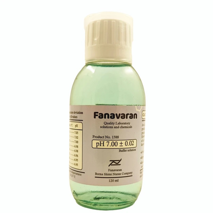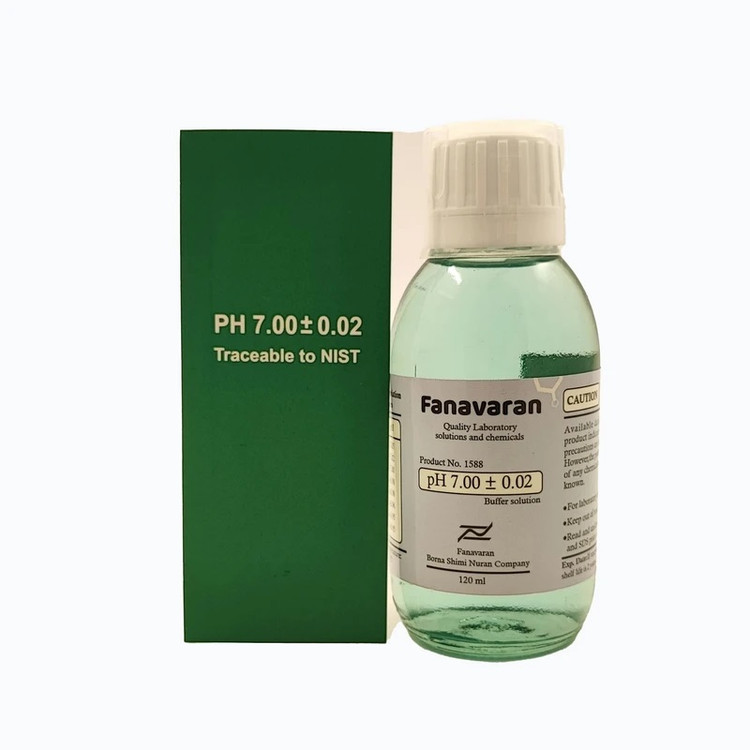 بافر 0.02± pH 7.00 : دستگاه های pH متر نیازمند حفظ صحت در اندازه گیری هستند که در دوره های زمانی مشخصی که به میزان استفاده از آنها بستگی دارد باید آنها را کالیبره کرد تا در اندازه گیری دچار خطا نشوند و نتایج قابل اعتماد باشند . معمولا این دستگاه ها در 3 نقطه کالیبره میشوند . یکی از این موارد نقطه های pH عدد 7.00 می باشد و تضمین کننده صحت در pH های قلیایی میباشد . با بسته بندی مناسب جهت حفظ ماندگاری و کیفیت محصول در طول زمان نگهداری میباشد. حجم کلی این محلول 120cc است .