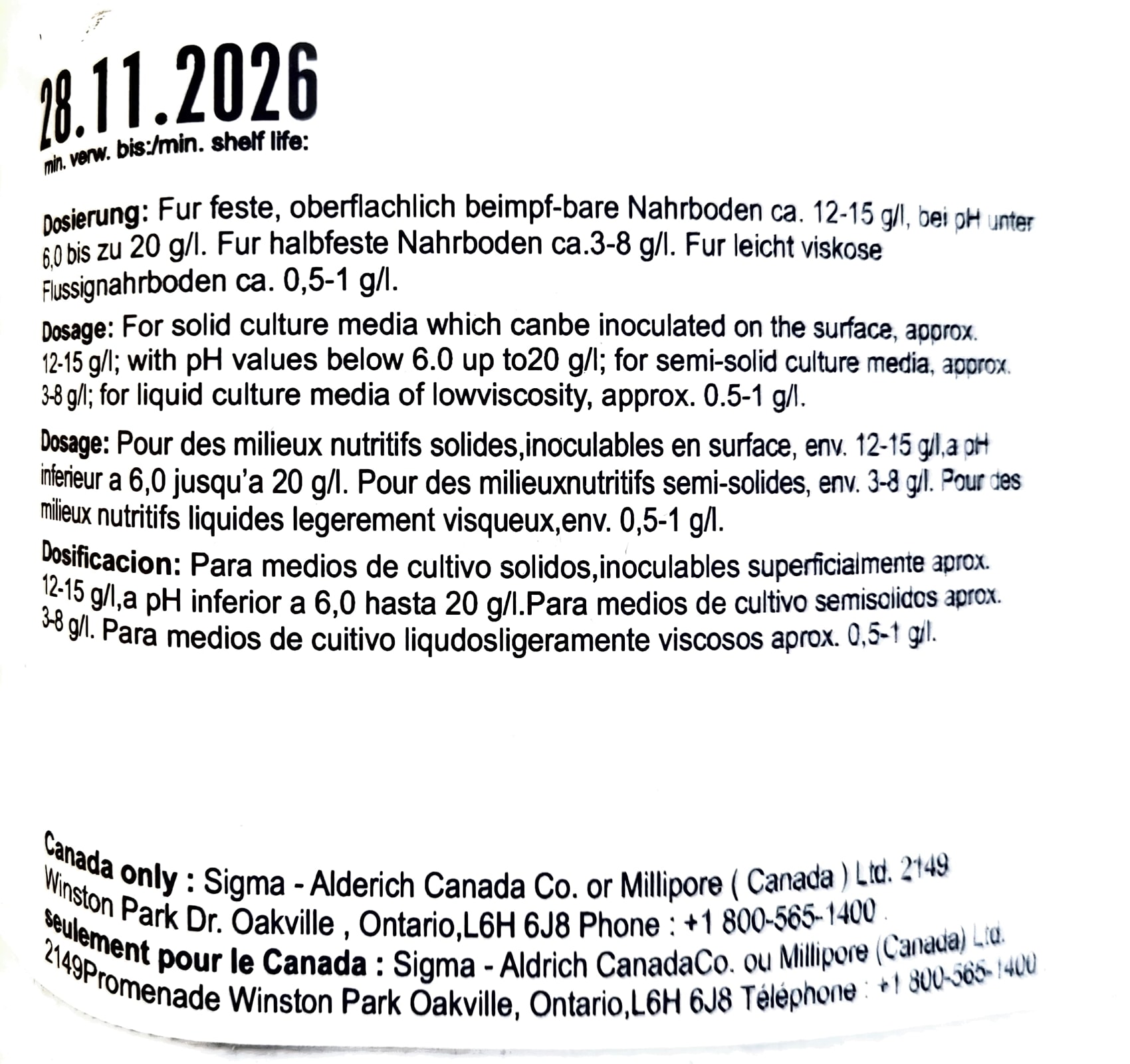 عامل ژلدهنده در محیطهای کشت جامد میکروبیولوژی، برای کاربردهای دارویی، محیط زیستی، مواد غذایی و نوشیدنیها .